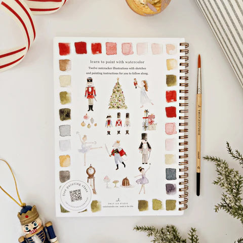 The Nutcracker Watercolor Workbook includes 12 Nutcracker illustrations with an example of the finished painting, step-by-step instructions, and a lightly illustrated sketch for you to paint. It's just like a coloring book, but with watercolor!